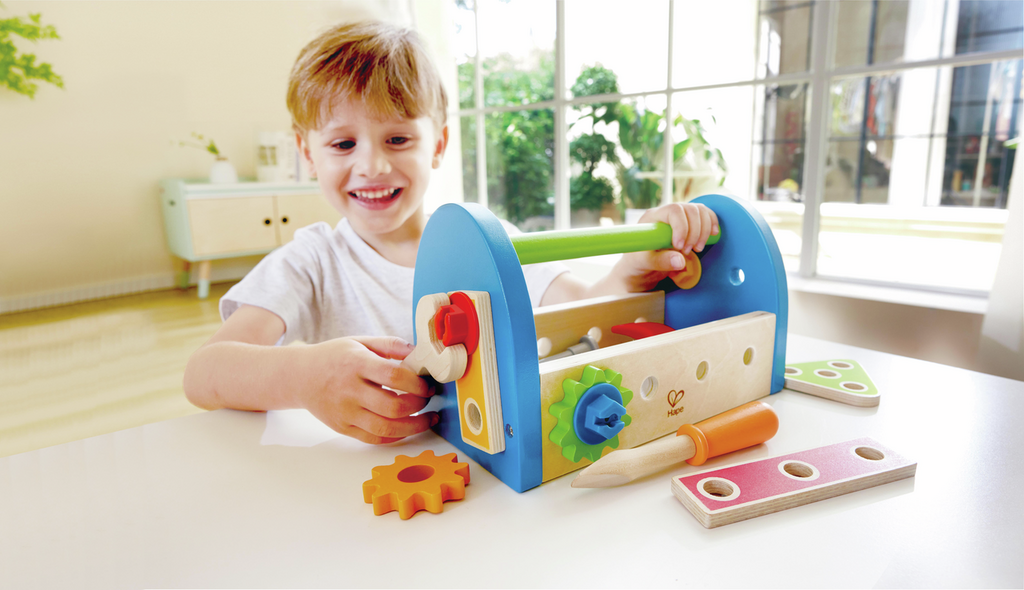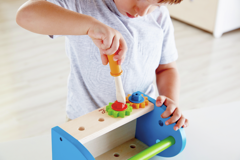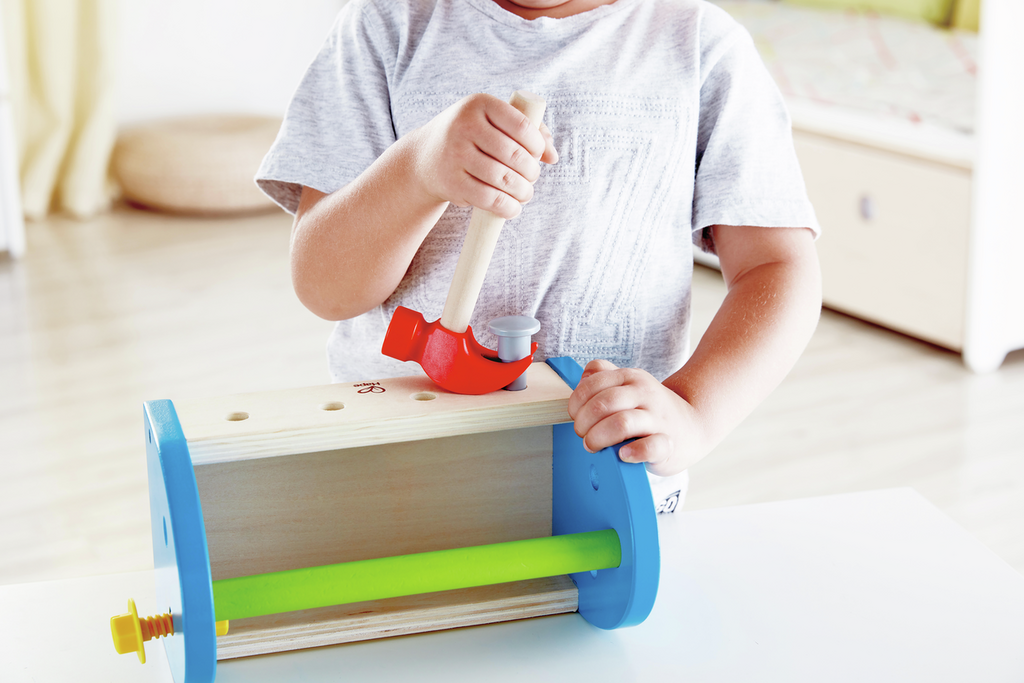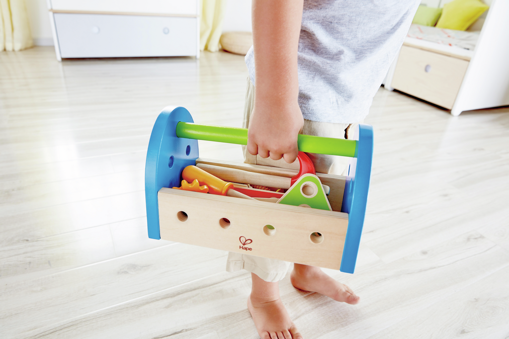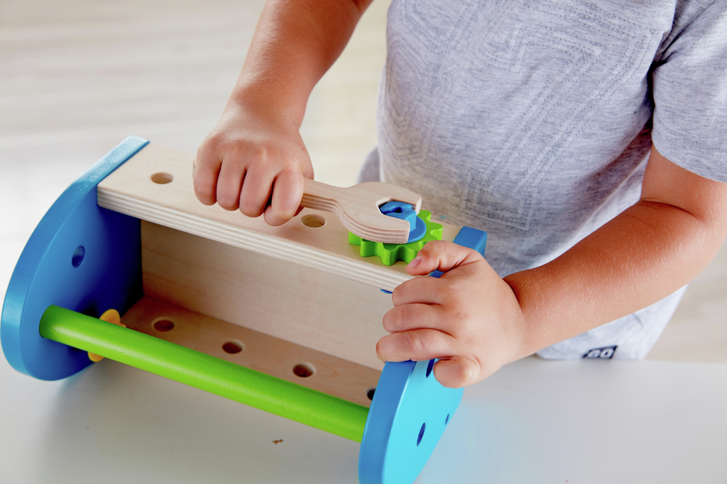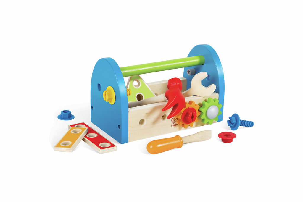 Tornillos, tuercas y todas las herramientas que necesita un pequeño constructor vienen listas para usar en esta caja de herramientas de madera. Un set completo para imitar a los mayores, montar, desmontar y crear una y otra vez, mientras desarrollan la motricidad fina, la lógica y la coordinación mano-ojo. Ideal para juego simbólico y para introducir conceptos S.T.E.A.M. de forma natural.