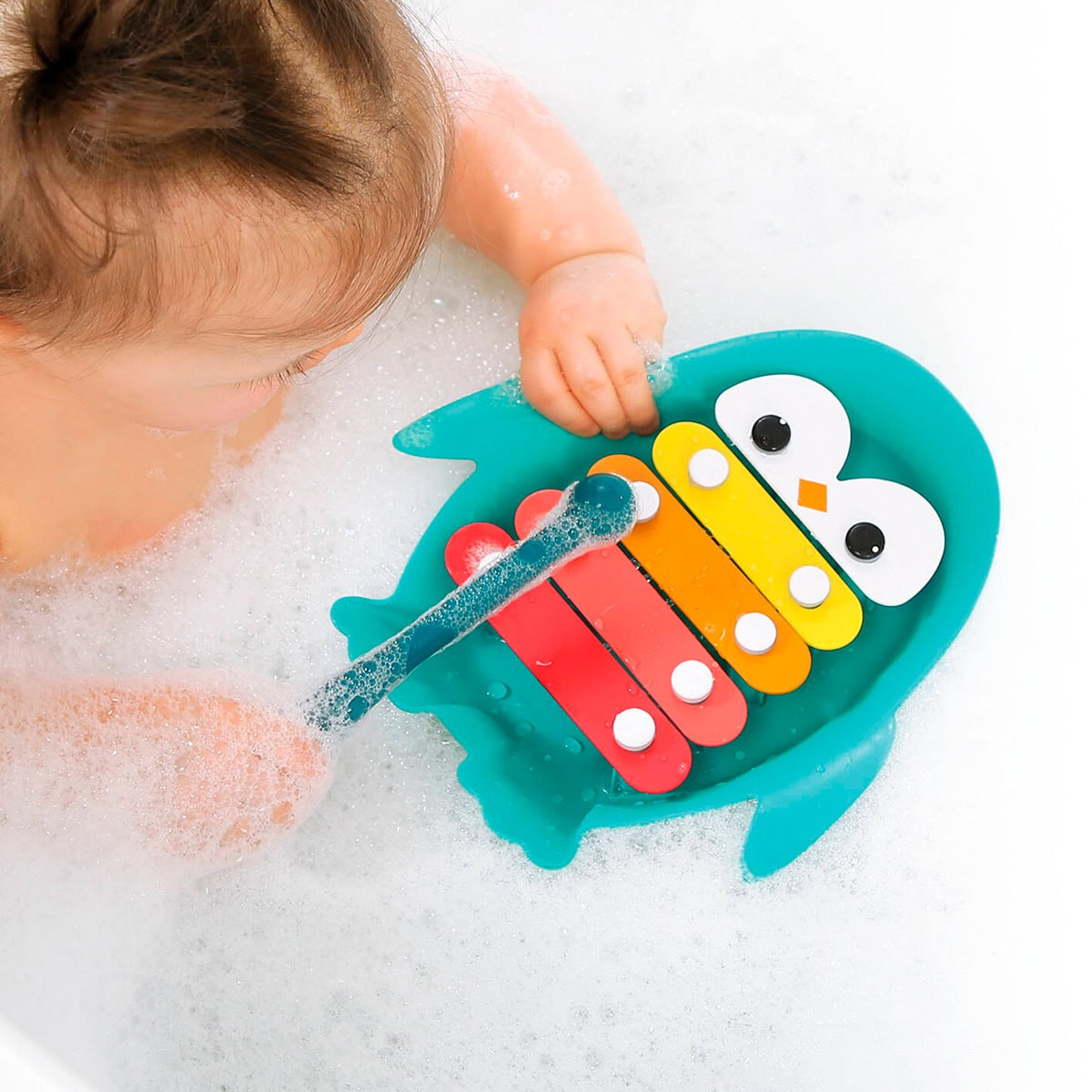 - Xilófono de baño suave y flotante con forma de pingüino.
