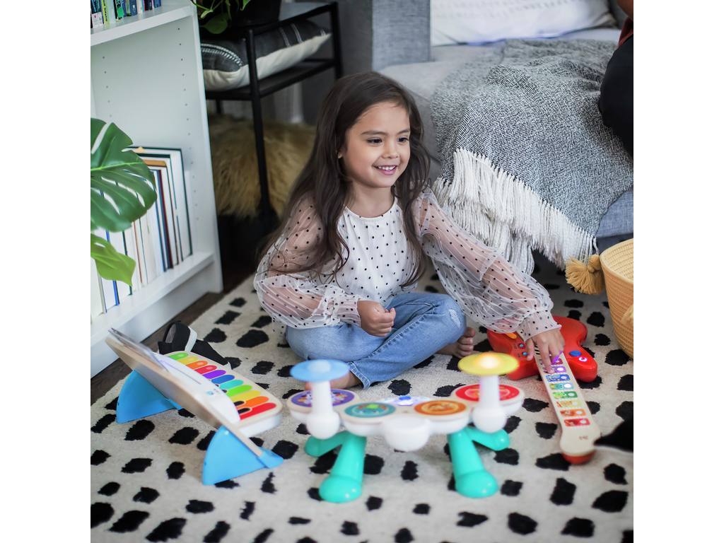 Una guitarra infantil interactiva con reproducción conectada para tocar en solitario o formar una banda con otros instrumentos Together in Tune™. Pensada para manos pequeñas, acompaña los primeros pasos musicales con un diseño seguro, limpio y muy motivador.