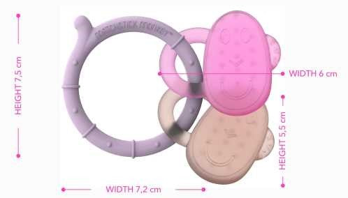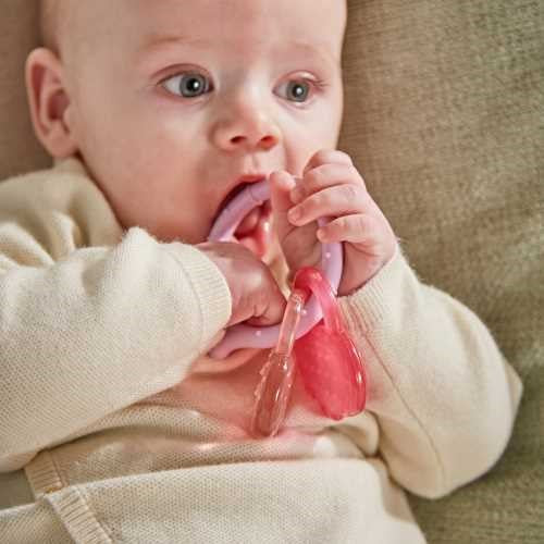 Es un mordedor infantil refrigerable, pensado para bebés a partir de 3 meses. Ayuda a aliviar el dolor de encías durante la salida de los primeros dientes y favorece el agarre y la exploración oral de forma segura.