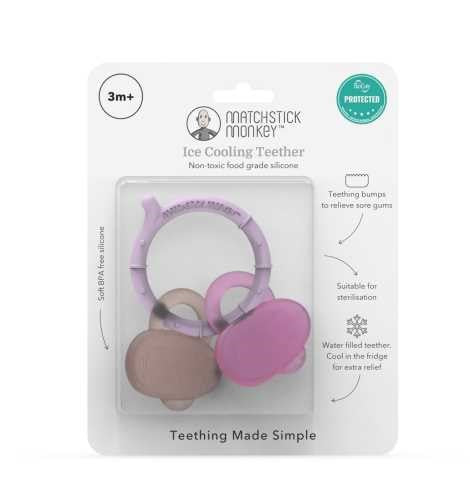 El mordedor Matchstick Monkey está diseñado para aliviar las molestias de la dentición de forma segura y eficaz. Sus zonas rellenas de agua proporcionan un alivio extra cuando se enfría en el refrigerador, ofreciendo una sensación calmante para las encías del bebé.
