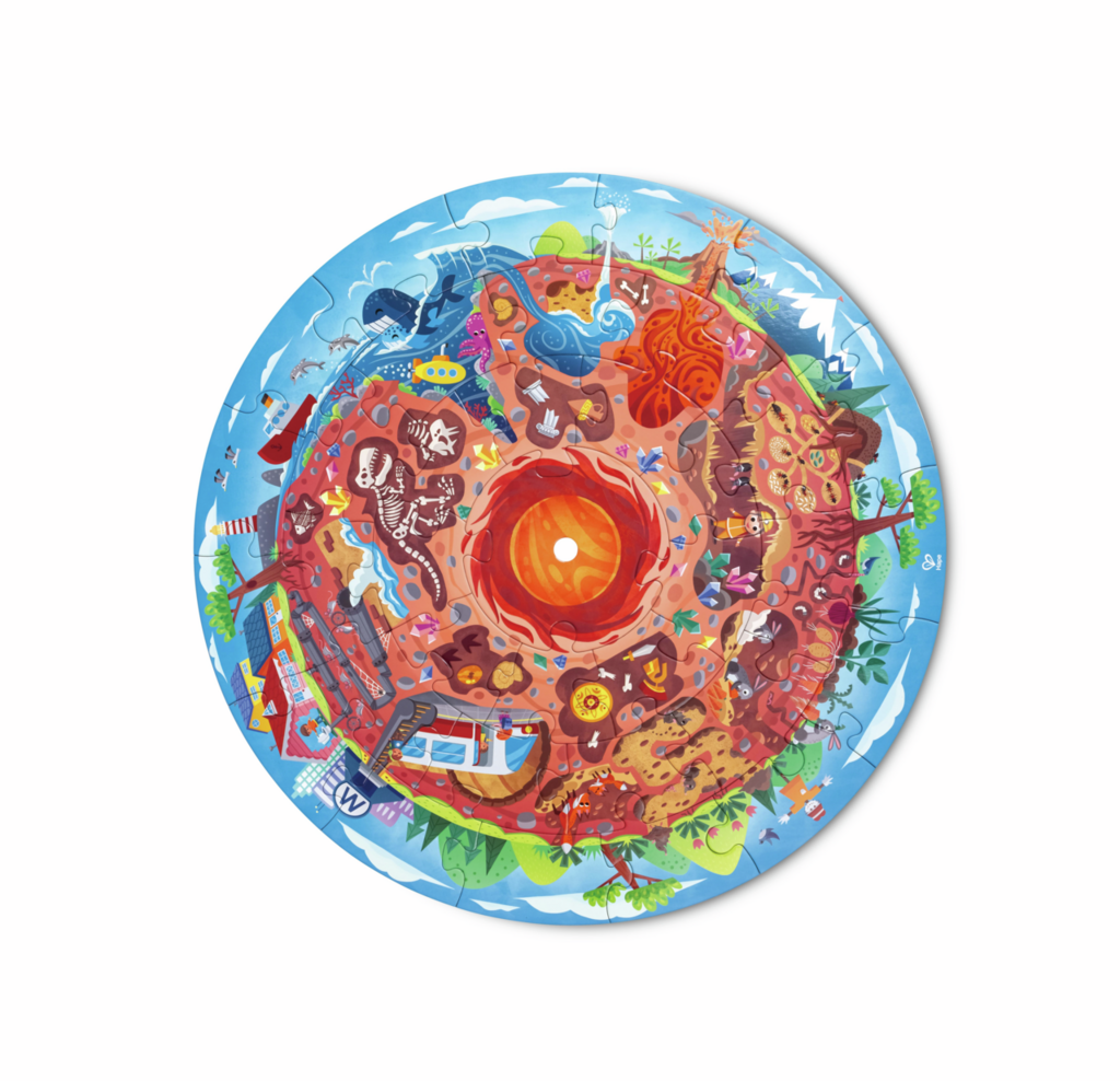Un puzle educativo de 36 piezas grandes para peques desde 4 años, ideal para amantes de la ciencia y la naturaleza. Perfecto para jugar en familia o de forma autónoma, mientras se introducen conceptos de geología, ecología y ciencias naturales.