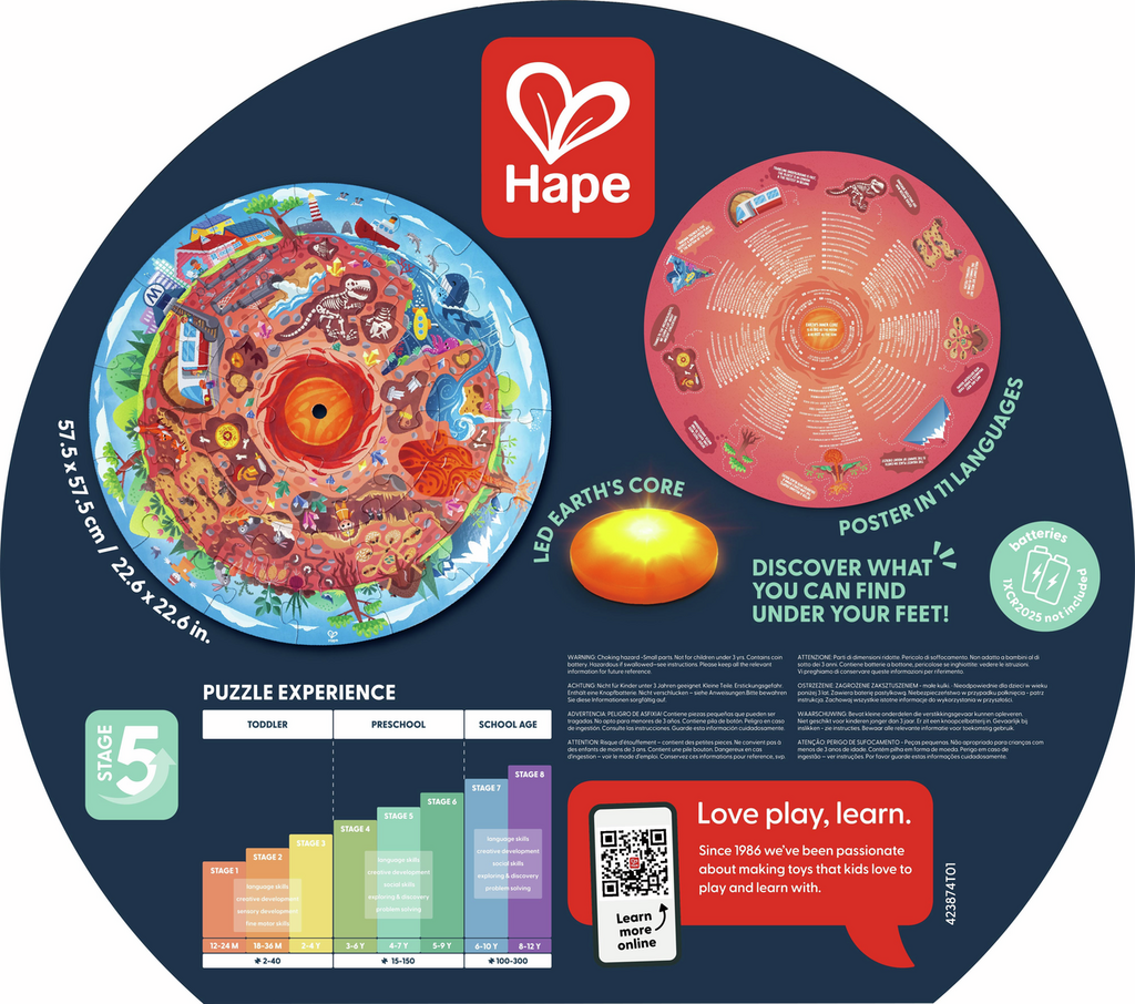 - Contenido: puzle de 36 piezas; luz LED integrada en el núcleo; póster educativo a doble cara.