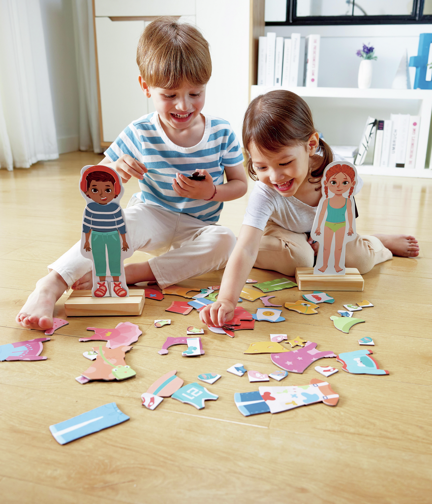 ¡Deja volar la imaginación y la creatividad de los peques! Con este divertido juego magnético para vestir, los niños podrán combinar, crear y reinventar conjuntos infinitos para sus personajes. Un clásico reinventado que fomenta el gusto por la moda, la lógica y la creatividad.