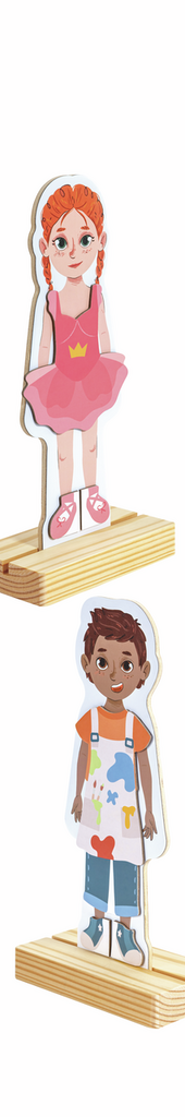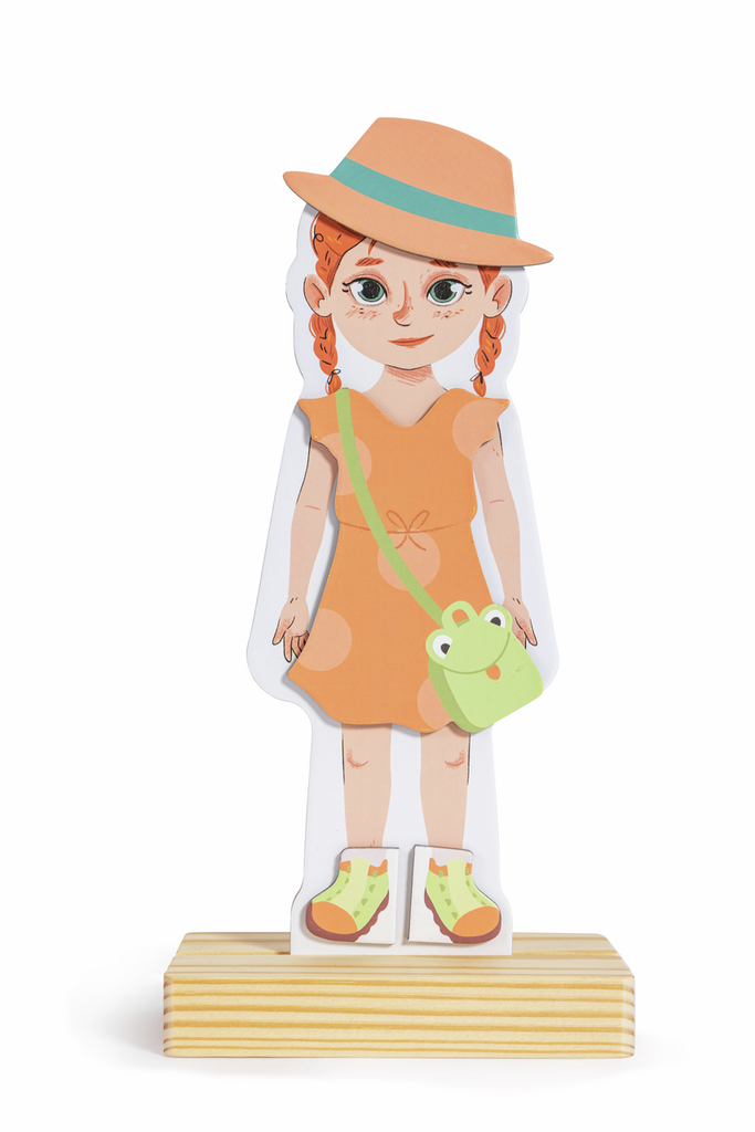 - Incluye: base de madera y figuras magnéticas con ropa y accesorios