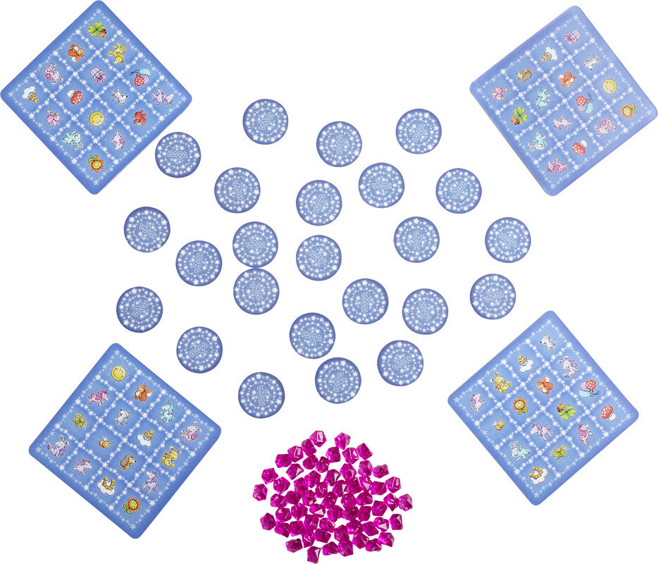 ¡Unicornio Destello y sus amigos te traen un bingo mágico! Un bingo ilustrado y facilísimo: a medida que se revelan fichas, los peques colocan cristales nube en su cartón. ¡Quien completa primero una línea, gana! Partidas rápidas para disfrutar mientras entrenan atención y destreza.